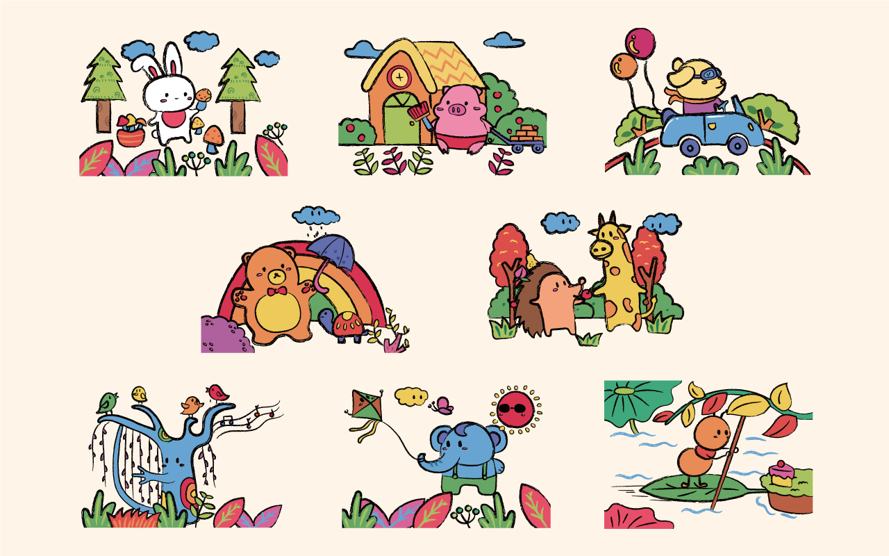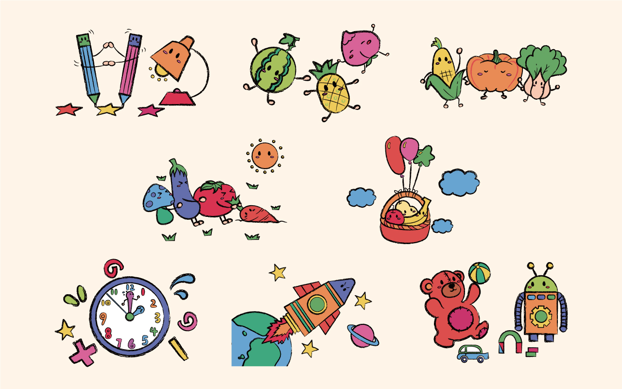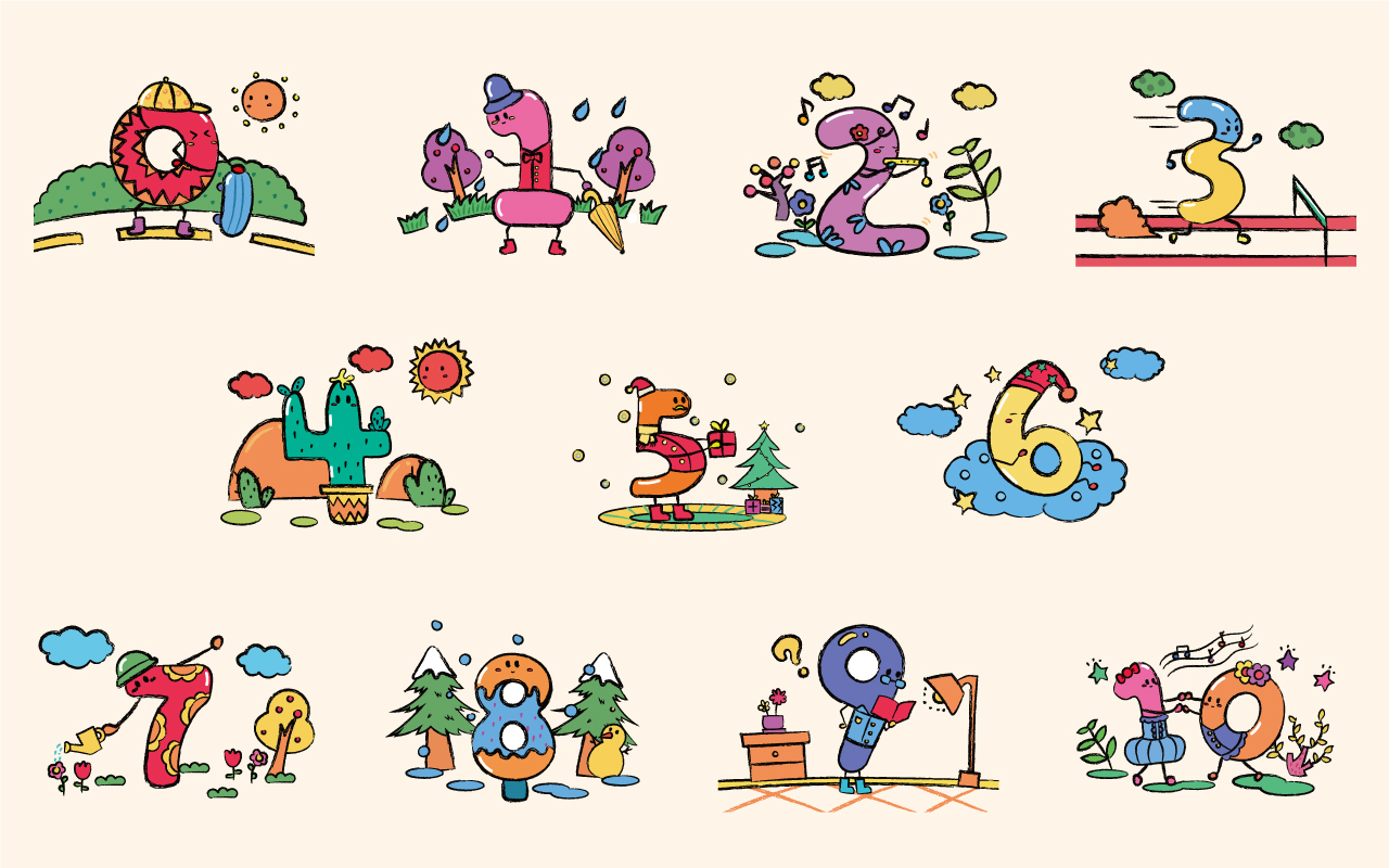 產(chǎn)品通過(guò)將枯燥的數(shù)字、靜物、動(dòng)物擬人化的畫(huà)法