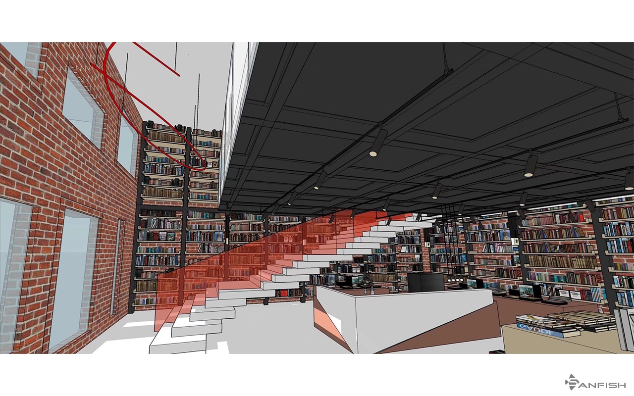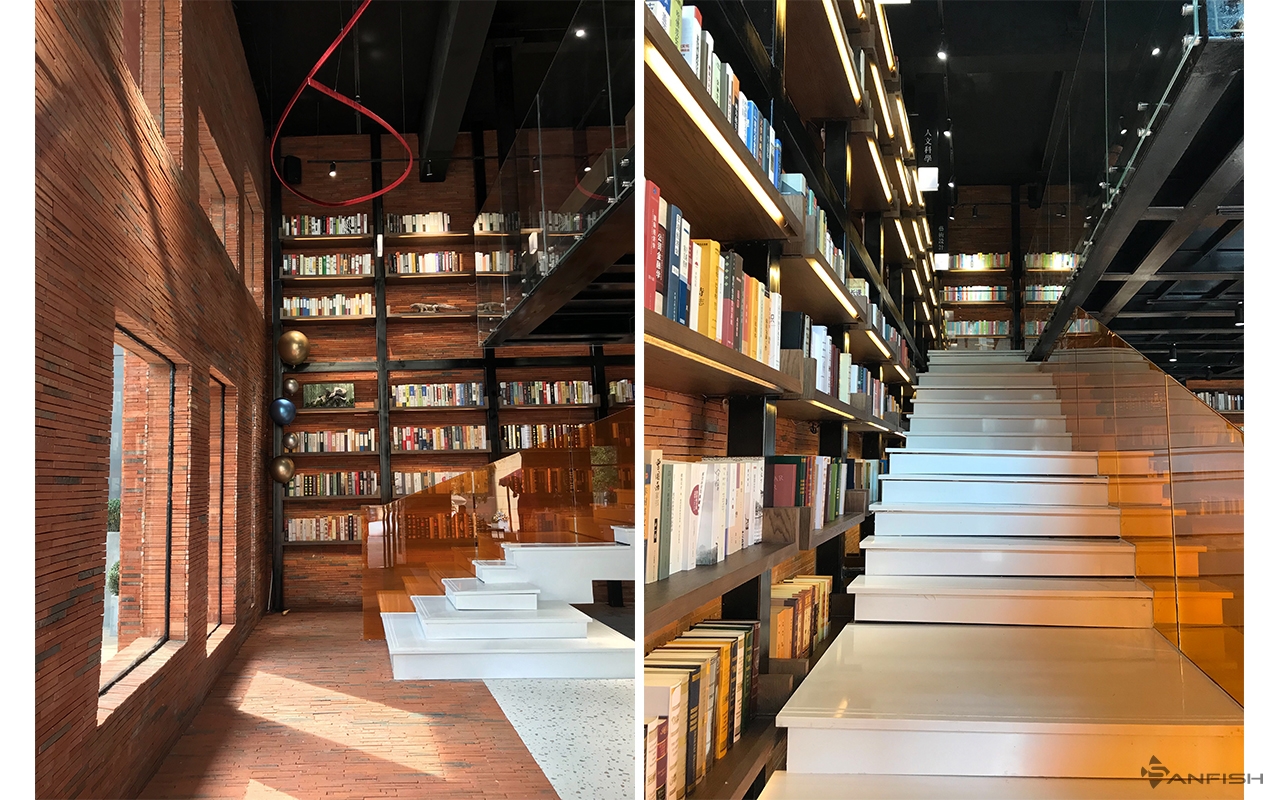 干凈簡潔,卻又不失時(shí)尚的現(xiàn)代風(fēng)格。磚紅色的墻壁,還原了建筑的原始構(gòu)造,傳遞出書店與建筑冷暖對比的設(shè)計(jì)理念。